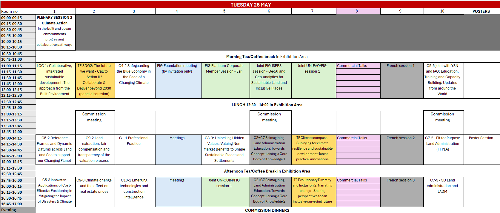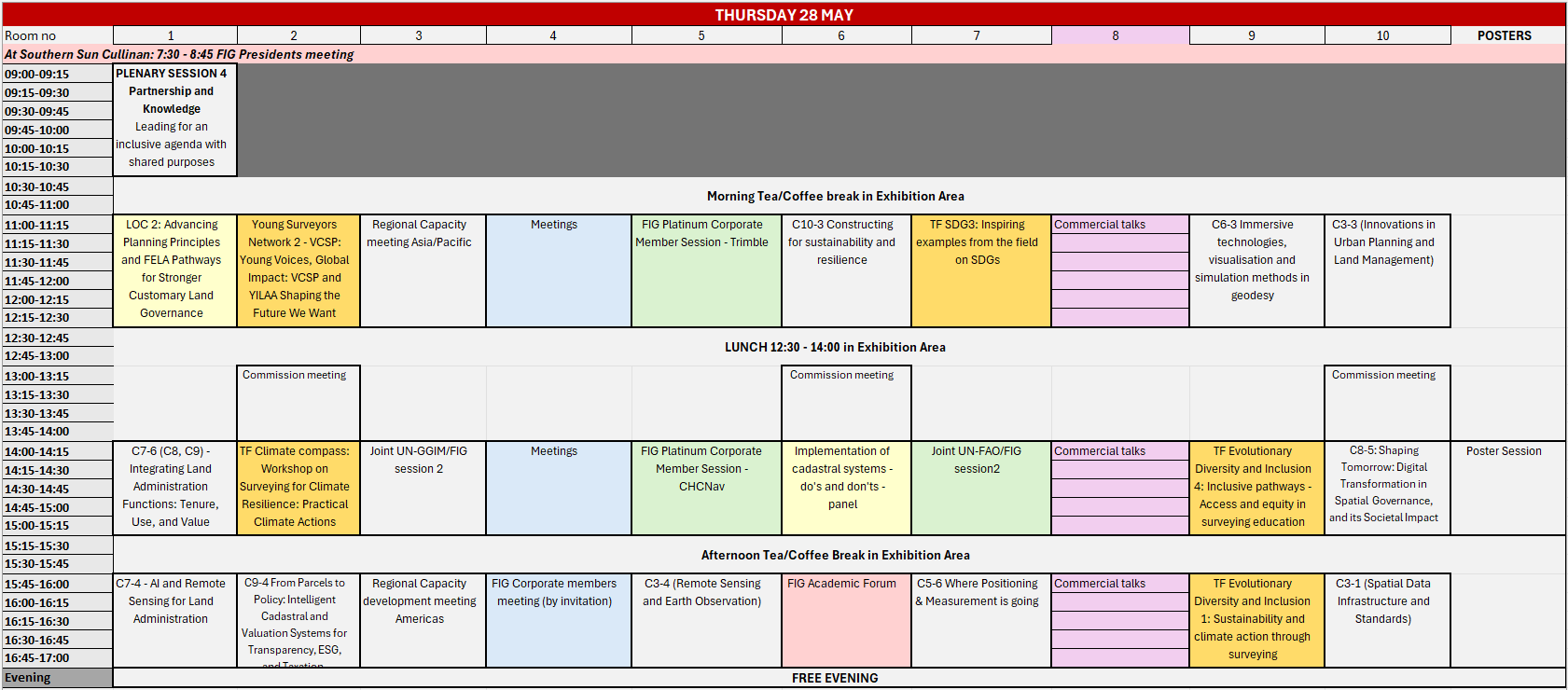 | Evenings | Welcome Reception | FIG Commission Dinners | Gala Dinner | |||||